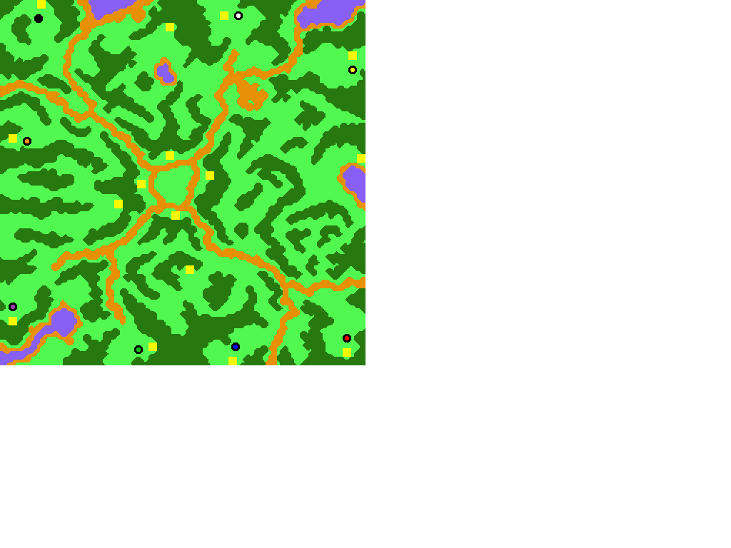 File Name: KPfixgow.pud Description: Fixed GOW by MugWump Dimensions: 128 x 128 Terrain: Forest No Players: 8 % Open Land: 57 % Forest: 40 % Water: 3 % Mountains: 0 Total Gold: 800,000 (16 mines) Total Oil: 0 Total Lumber: 499,900 Start Mines: 60,000 Other Mines: 30,000 - 50,000 Player 1 (Red) Person - Human (G=2000 L=1000 O=1000) 1 Peasant 1 Farm 1 Town Hall Player 2 (Blue) Person - Orc (G=2000 L=1000 O=1000) 1 Peon 1 Pig Farm 1 Great Hall Player 3 (Green) Person - Human (G=2000 L=1000 O=1000) 1 Peasant 1 Farm 1 Town Hall Player 4 (Purple) Person - Orc (G=2000 L=1000 O=1000) 1 Peon 1 Pig Farm 1 Great Hall Player 5 (Orange) Person - Human (G=2000 L=1000 O=1000) 1 Peasant 1 Farm 1 Town Hall Player 6 (Black) Person - Orc (G=2000 L=1000 O=1000) 1 Peon 1 Pig Farm 1 Great Hall Player 7 (White) Person - Human (G=2000 L=1000 O=1000) 1 Peasant 1 Farm 1 Town Hall Player 8 (Yellow) Person - Orc (G=2000 L=1000 O=1000) 1 Peon 1 Pig Farm 1 Great Hall