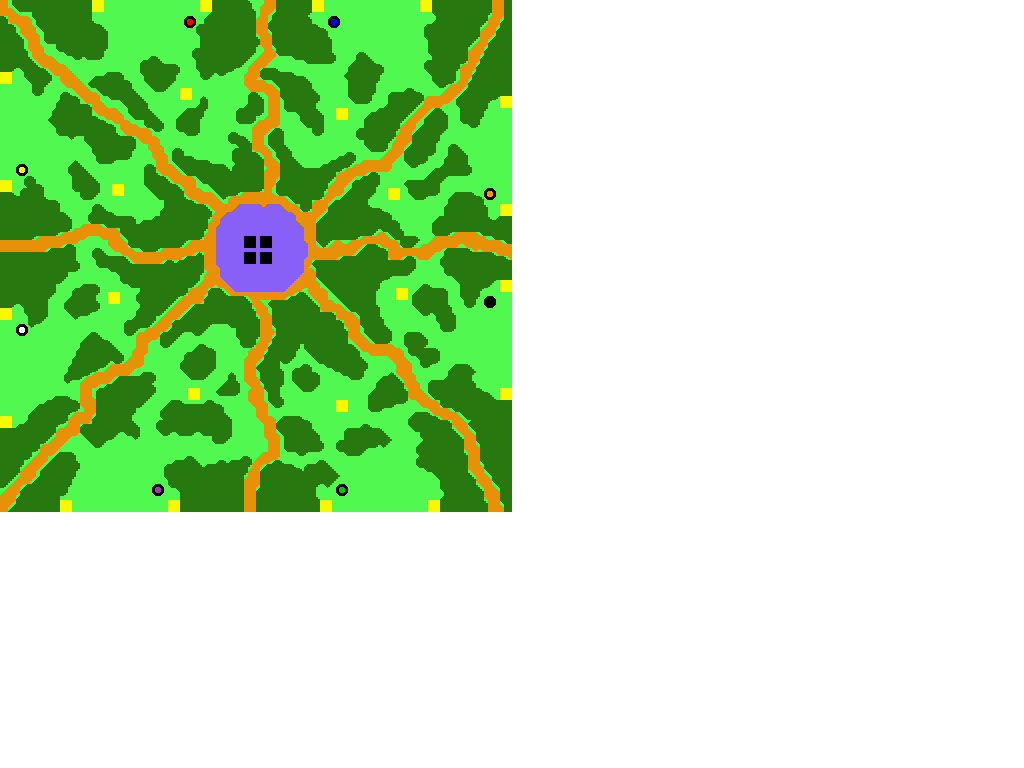 File Name: KPgldgrd.pud Description: Gold Garden Dimensions: 128 x 128 Terrain: Forest No Players: 8 % Open Land: 51 % Forest: 46 % Water: 3 % Mountains: 0 Total Gold: 2,160,000 (24 mines) Total Oil: 20,000 (4 patches) Total Lumber: 610,900 Start Mines: 90,000 Other Mines: 90,000 Player 1 (Red) Person - Orc (G=3000 L=2000 O=1000) 1 Peon 2 Pig Farm 1 Great Hall 1 Orc Guard Tower Player 2 (Blue) Person - Human (G=3000 L=2000 O=1000) 1 Peasant 2 Farm 1 Town Hall 1 Human Guard Tower Player 3 (Green) Person - Orc (G=3000 L=2000 O=1000) 1 Peon 2 Pig Farm 1 Great Hall 1 Orc Guard Tower Player 4 (Purple) Person - Human (G=3000 L=2000 O=1000) 1 Peasant 2 Farm 1 Town Hall 1 Human Guard Tower Player 5 (Orange) Person - Orc (G=3000 L=2000 O=1000) 1 Peon 2 Pig Farm 1 Great Hall 1 Orc Guard Tower Player 6 (Black) Person - Human (G=3000 L=2000 O=1000) 1 Peasant 2 Farm 1 Town Hall 1 Human Guard Tower Player 7 (White) Person - Orc (G=3000 L=2000 O=1000) 1 Peon 2 Pig Farm 1 Great Hall 1 Orc Guard Tower Player 8 (Yellow) Person - Human (G=3000 L=2000 O=1000) 1 Peasant 2 Farm 1 Town Hall 1 Human Guard Tower