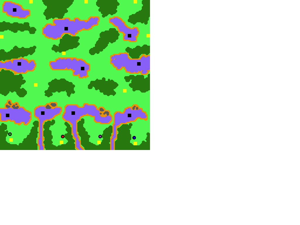 File Name: KPgldrsh.pud Description: Gold Rush by Cobra Dimensions: 128 x 128 Terrain: Forest No Players: 4 % Open Land: 52 % Forest: 29 % Water: 18 % Mountains: 1 Total Gold: 530,000 (12 mines) Total Oil: 50,000 (10 patches) Total Lumber: 389,900 Start Mines: 60,000 Other Mines: 30,000 - 50,000 Player 1 (Red) Person - Human (G=3500 L=2500 O=1000) 1 Peasant 1 Farm 1 Town Hall Player 2 (Blue) Person - Orc (G=3500 L=2500 O=1000) 1 Peon 1 Pig Farm 1 Great Hall Player 3 (Green) Person - Human (G=3500 L=2500 O=1000) 1 Peasant 1 Farm 1 Town Hall Player 4 (Purple) Person - Orc (G=3500 L=2500 O=1000) 1 Peon 1 Pig Farm 1 Great Hall