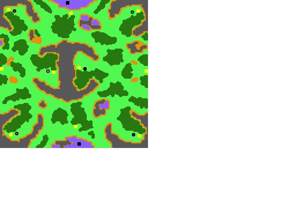 File Name: KPhammer.pud Description: Hammer by King Sley Dimensions: 128 x 128 Terrain: Forest No Players: 6 % Open Land: 51 % Forest: 27 % Water: 3 % Mountains: 19 Total Gold: 560,000 (10 mines) Total Oil: 10,000 (2 patches) Total Lumber: 349,500 Start Mines: 60,000 Other Mines: 50,000 Player 1 (Red) Person - Human (G=3500 L=2500 O=1000) 1 Peasant 1 Farm 1 Town Hall 1 Human Guard Tower Player 2 (Blue) Person - Orc (G=3500 L=2500 O=1000) 1 Peon 1 Pig Farm 1 Great Hall 1 Orc Guard Tower Player 3 (Green) Person - Human (G=3500 L=2500 O=1000) 1 Peasant 1 Farm 1 Town Hall 1 Human Guard Tower Player 4 (Purple) Person - Orc (G=3500 L=2500 O=1000) 1 Peon 1 Pig Farm 1 Great Hall 1 Orc Guard Tower Player 5 (Orange) Person - Human (G=3500 L=2500 O=1000) 1 Peasant 1 Farm 1 Town Hall 1 Human Guard Tower Player 6 (Black) Person - Orc (G=3500 L=2500 O=1000) 1 Peon 1 Pig Farm 1 Great Hall 1 Orc Guard Tower