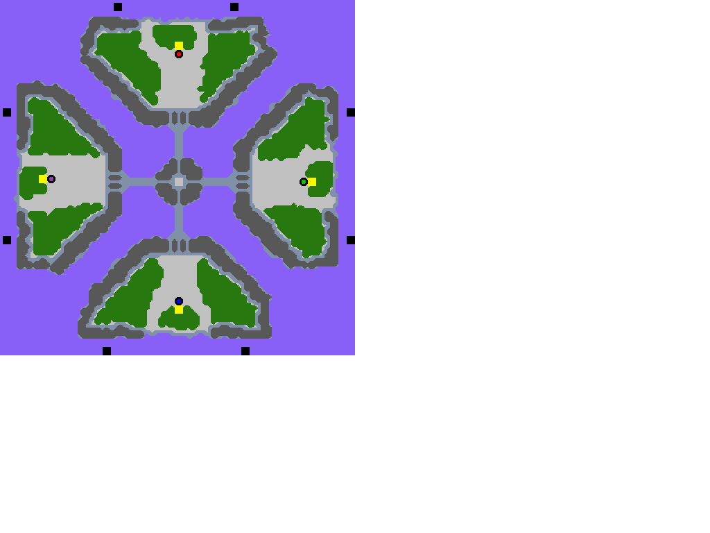 File Name: KPcoldwr.pud Description: Cold War by Ohwrd Dimensions: 128 x 128 Terrain: Winter No Players: 4 % Open Land: 18 % Forest: 18 % Water: 47 % Mountains: 17 Total Gold: 1,000,000 (4 mines) Total Oil: 400,000 (8 patches) Total Lumber: 237,500 Start Mines: 250,000 Other Mines: None Player 1 (Red) Person - Human (G=5000 L=2000 O=1000) 1 Peasant 1 Farm 1 Town Hall Player 2 (Blue) Person - Orc (G=5000 L=2000 O=1000) 1 Peon 1 Pig Farm 1 Great Hall Player 3 (Green) Person - Human (G=5000 L=2000 O=1000) 1 Peasant 1 Farm 1 Town Hall Player 4 (Purple) Person - Orc (G=5000 L=2000 O=1000) 1 Peon 1 Pig Farm 1 Great Hall