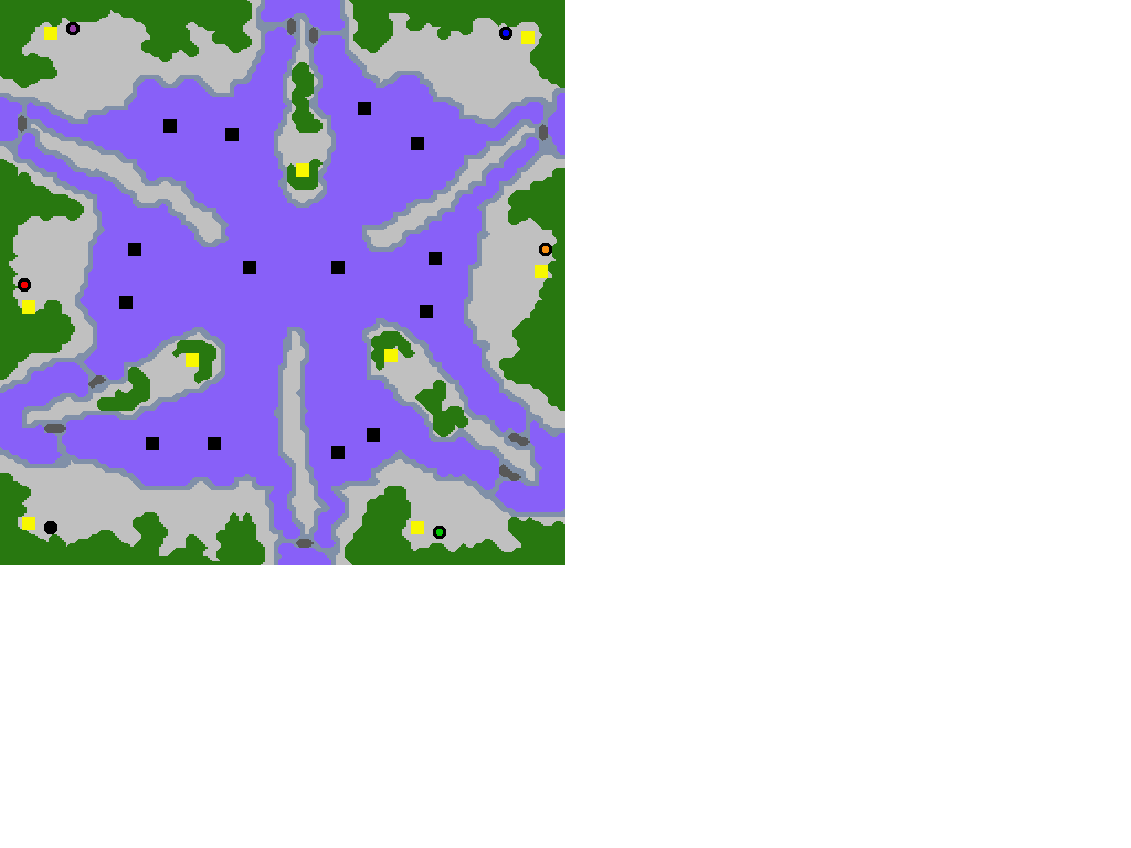 File Name: KPhexagn.pud Description: Hexagon by Alterac Dimensions: 128 x 128 Terrain: Winter No Players: 6 % Open Land: 35 % Forest: 19 % Water: 45 % Mountains: 1 Total Gold: 810,000 (9 mines) Total Oil: 300,000 (14 patches) Total Lumber: 257,500 Start Mines: 90,000 Other Mines: 90,000 Player 1 (Red) Person - Human (G=2000 L=1500 O=2000) 1 Peasant 1 Farm 1 Gnomish Inventor 1 Town Hall Player 2 (Blue) Person - Orc (G=2000 L=1500 O=2000) 1 Peon 1 Pig Farm 1 Goblin Alchemist 1 Great Hall Player 3 (Green) Person - Human (G=2000 L=1500 O=2000) 1 Peasant 1 Farm 1 Gnomish Inventor 1 Town Hall Player 4 (Purple) Person - Orc (G=2000 L=1500 O=2000) 1 Peon 1 Pig Farm 1 Goblin Alchemist 1 Great Hall Player 5 (Orange) Person - Human (G=2000 L=1500 O=2000) 1 Peasant 1 Farm 1 Gnomish Inventor 1 Town Hall Player 6 (Black) Person - Orc (G=2000 L=1500 O=2000) 1 Peon 1 Pig Farm 1 Goblin Alchemist 1 Great Hall