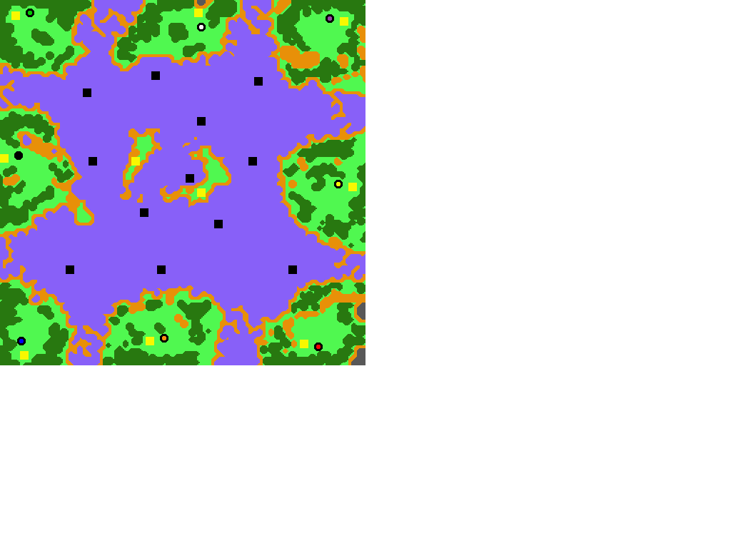File Name: KPpircov.pud Description: Pirate's Cove by Kyp Dimensions: 128 x 128 Terrain: Forest No Players: 8 % Open Land: 29 % Forest: 18 % Water: 53 % Mountains: 0 Total Gold: 510,000 (10 mines) Total Oil: 300,000 (12 patches) Total Lumber: 217,700 Start Mines: 55,000 Other Mines: 35,000 Player 1 (Red) Person - Human (G=2000 L=1000 O=1000) 1 Peasant 1 Farm 1 Town Hall Player 2 (Blue) Person - Human (G=2000 L=1000 O=1000) 1 Peasant 1 Farm 1 Town Hall Player 3 (Green) Person - Human (G=2000 L=1000 O=1000) 1 Peasant 1 Farm 1 Town Hall Player 4 (Purple) Person - Human (G=2000 L=1000 O=1000) 1 Peasant 1 Farm 1 Town Hall Player 5 (Orange) Person - Human (G=2000 L=1000 O=1000) 1 Peasant 1 Farm 1 Town Hall Player 6 (Black) Person - Human (G=2000 L=1000 O=1000) 1 Peasant 1 Farm 1 Town Hall Player 7 (White) Person - Human (G=2000 L=1000 O=1000) 1 Peasant 1 Farm 1 Town Hall Player 8 (Yellow) Person - Human (G=2000 L=1000 O=1000) 1 Peasant 1 Farm 1 Town Hall