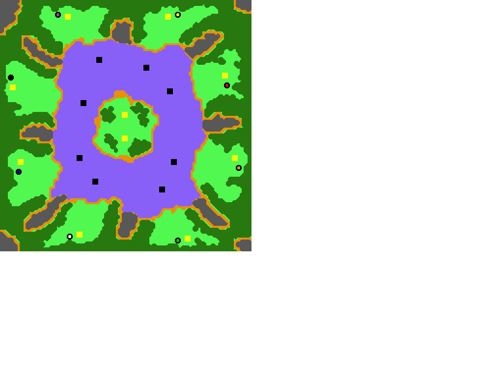 File Name: KPwhtkey.pud Description: What is the Key by Gotcha Dimensions: 128 x 128 Terrain: Forest No Players: 8 % Open Land: 31 % Forest: 32 % Water: 30 % Mountains: 7 Total Gold: 560,000 (10 mines) Total Oil: 140,000 (8 patches) Total Lumber: 427,200 Start Mines: 60,000 Other Mines: 40,000 Player 1 (Red) Person - Human (G=2000 L=1000 O=1000) 1 Peasant 1 Knight 1 Farm 1 Town Hall Player 2 (Blue) Person - Orc (G=2000 L=1000 O=1000) 1 Peon 1 Ogre 1 Pig Farm 1 Great Hall Player 3 (Green) Person - Human (G=2000 L=1000 O=1000) 1 Peasant 1 Knight 1 Farm 1 Town Hall Player 4 (Purple) Person - Orc (G=2000 L=1000 O=1000) 1 Peon 1 Ogre 1 Pig Farm 1 Great Hall Player 5 (Orange) Person - Human (G=2000 L=1000 O=1000) 1 Peasant 1 Knight 1 Farm 1 Town Hall Player 6 (Black) Person - Orc (G=2000 L=1000 O=1000) 1 Peon 1 Ogre 1 Pig Farm 1 Great Hall Player 7 (White) Person - Human (G=2000 L=1000 O=1000) 1 Peasant 1 Knight 1 Farm 1 Town Hall Player 8 (Yellow) Person - Orc (G=2000 L=1000 O=1000) 1 Peon 1 Ogre 1 Pig Farm 1 Great Hall
